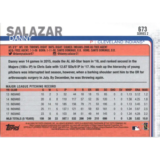 2019 Topps #673 Danny Salazar NM-MT Cleveland Indians Baseball Card