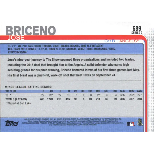 2019 Topps #689 Jose Briceno NM-MT RC Rookie Los Angeles Angels Baseball Card