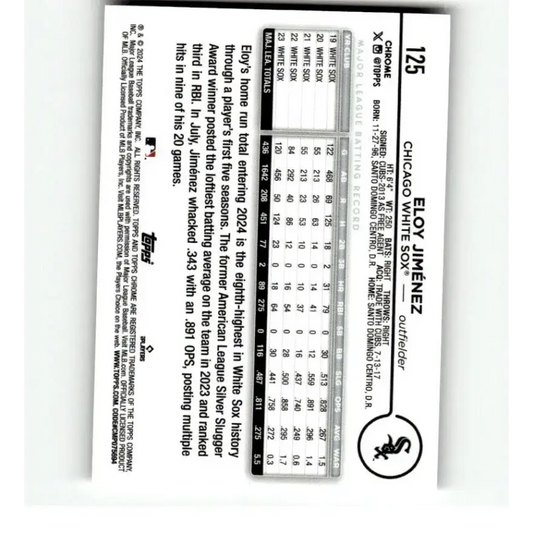 2024 Topps Chrome Refractor Prism #125 Eloy Jimenez NM-MT Chicago White Sox Baseball Card