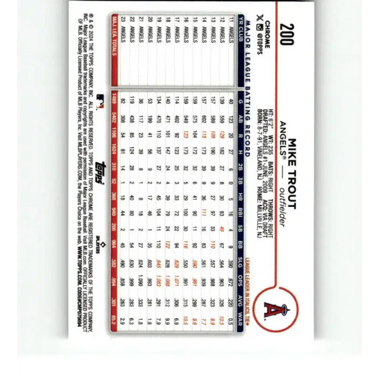 2024 Topps Chrome Refractor Prism #200 Mike Trout NM-MT Los Angeles Angels Baseball Card