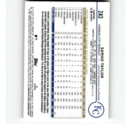2024 Topps Chrome Refractor Sepia #243 Samad Taylor NM-MT RC Rookie Kansas City Royals Baseball Card