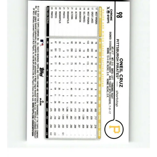 2024 Topps Chrome Refractor Sepia #98 Oneil Cruz NM-MT Pittsburgh Pirates Baseball Card