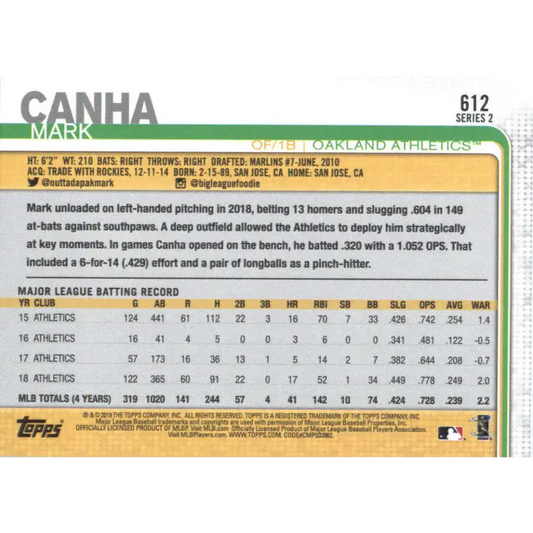2019 Topps #612 Mark Canha NM-MT Oakland Athletics Baseball Card