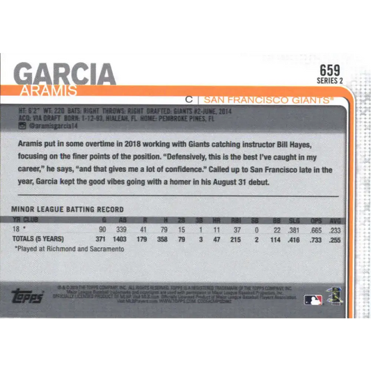 2019 Topps #659 Aramis Garcia NM-MT RC Rookie San Francisco Giants Baseball Card