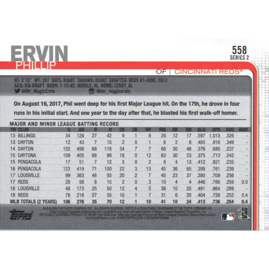 2019 Topps #558 Phillip Ervin NM-MT Cincinnati Reds Baseball Card