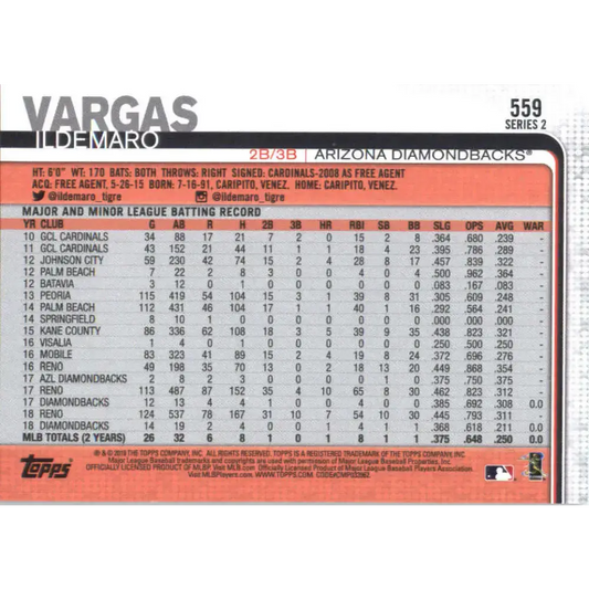 2019 Topps #559 Ildemaro Vargas NM-MT Arizona Diamondbacks Baseball Card