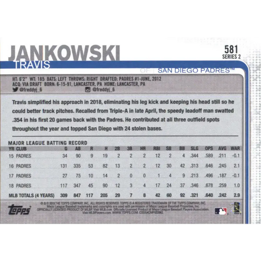 2019 Topps #581 Travis Jankowski NM-MT San Diego Padres Baseball Card
