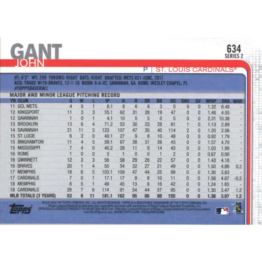 2019 Topps #634 John Gant NM-MT St. Louis Cardinals Baseball Card