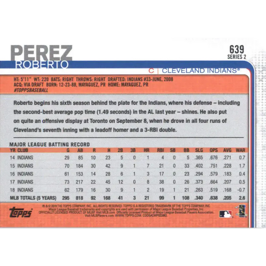 2019 Topps #639 Roberto Perez NM-MT Cleveland Indians Baseball Card