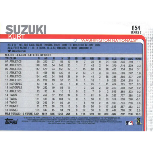 2019 Topps #654 Kurt Suzuki NM-MT Washington Nationals Baseball Card