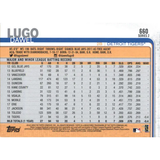 2019 Topps #660 Dawel Lugo NM-MT RC Rookie Detroit Tigers Baseball Card