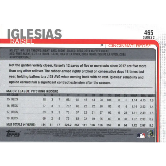 2019 Topps #465 Raisel Iglesias NM-MT Cincinnati Reds Baseball Card