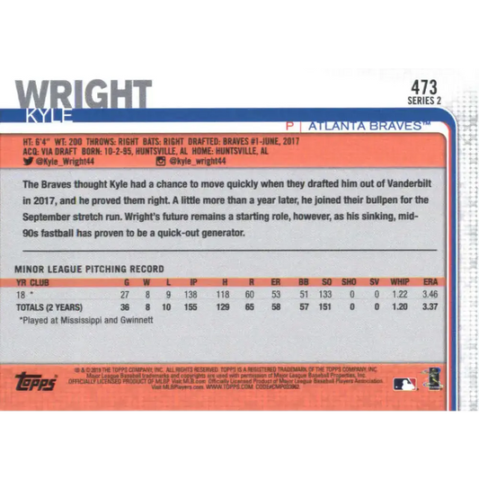 2019 Topps #473 Kyle Wright NM-MT RC Rookie Atlanta Braves Baseball Card