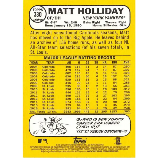 2017 Topps Heritage #330 Matt Holliday NM-MT New York Yankees Baseball Card
