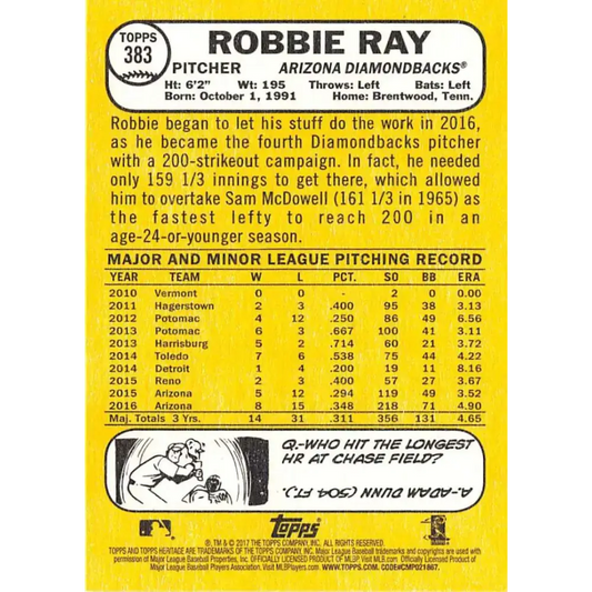 2017 Topps Heritage #383 Robbie Ray NM-MT Arizona Diamondbacks Baseball Card