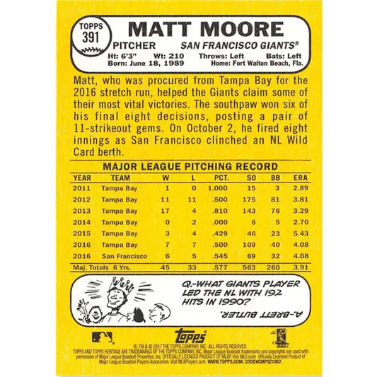 2017 Topps Heritage #391 Matt Moore NM-MT San Francisco Giants Baseball Card