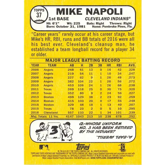 2017 Topps Heritage #37 Mike Napoli NM-MT Cleveland Indians Baseball Card