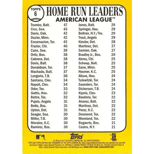 2017 Topps Heritage #6 Mark Trumbo/Nelson Cruz/Khris Davis NM-MT Baltimore Orioles/Seattle Mariners/Oakland Athletics Baseball Card