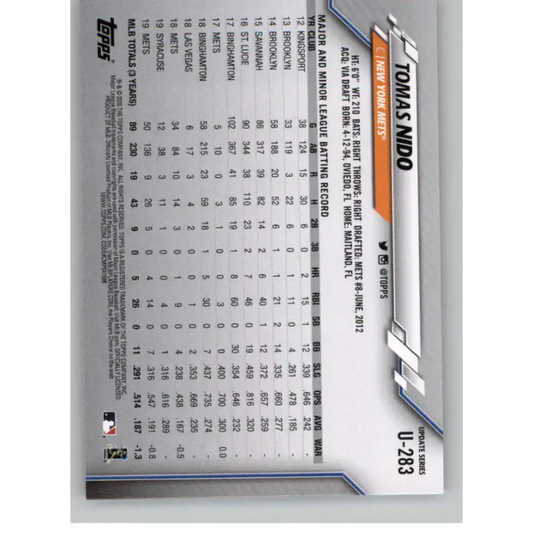 2020 Topps Update #U-283 Tomas Nido NM-MT New York Mets Baseball Card