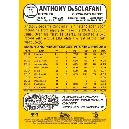 2017 Topps Heritage #35 Anthony DeSclafani NM-MT Cincinnati Reds Baseball Card