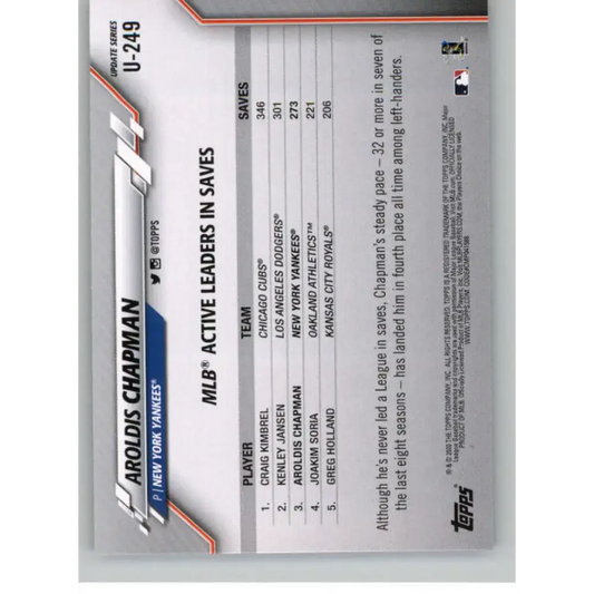 2020 Topps Update #U-249 Aroldis Chapman NM-MT New York Yankees Baseball Card