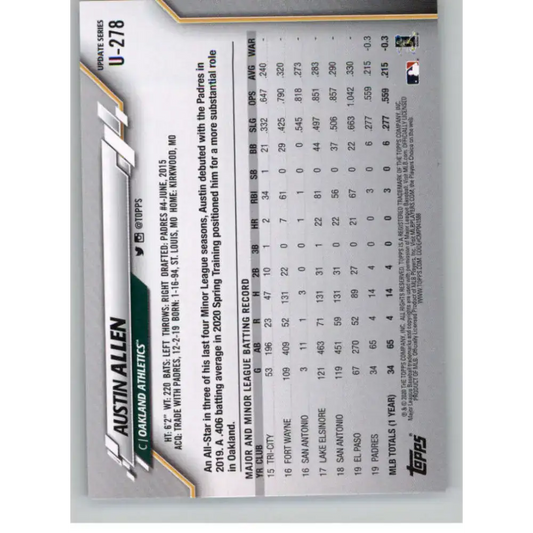 2020 Topps Update #U-278 Austin Allen NM-MT Oakland Athletics Baseball Card