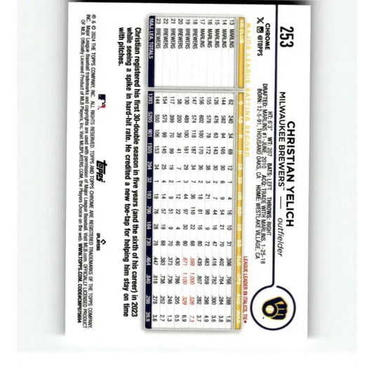 2024 Topps Chrome X-Fractor #253 Christian Yelich NM-MT Milwaukee Brewers Baseball Card