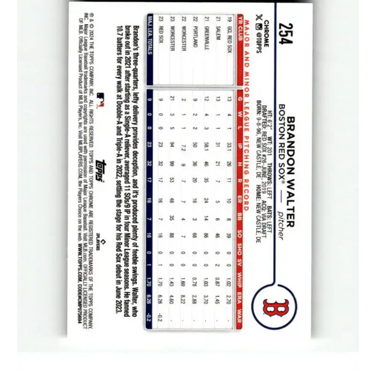 2024 Topps Chrome X-Fractor #254 Brandon Walter NM-MT RC Rookie Boston Red Sox Baseball Card