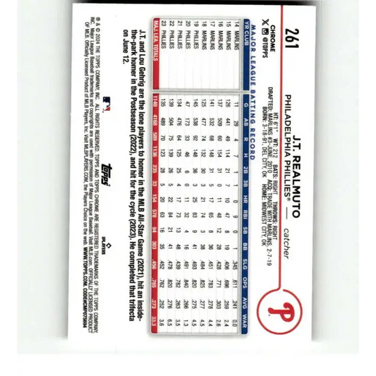 2024 Topps Chrome X-Fractor #261 J.T. Realmuto NM-MT Philadelphia Phillies Baseball Card
