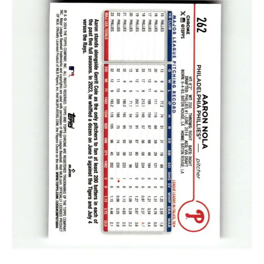 2024 Topps Chrome X-Fractor #262 Aaron Nola NM-MT Philadelphia Phillies Baseball Card