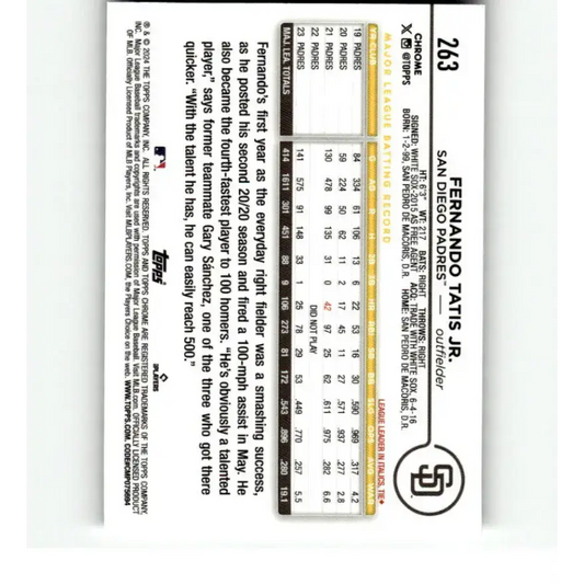 2024 Topps Chrome X-Fractor #263 Fernando Tatis Jr. NM-MT San Diego Padres Baseball Card