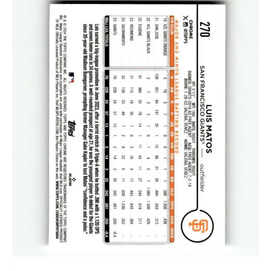 2024 Topps Chrome X-Fractor #270 Luis Matos NM-MT RC Rookie San Francisco Giants Baseball Card