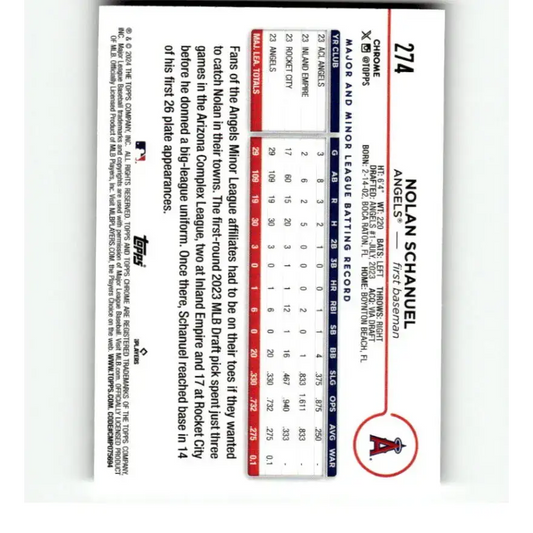2024 Topps Chrome X-Fractor #274 Nolan Schanuel NM-MT RC Rookie Los Angeles Angels Baseball Card