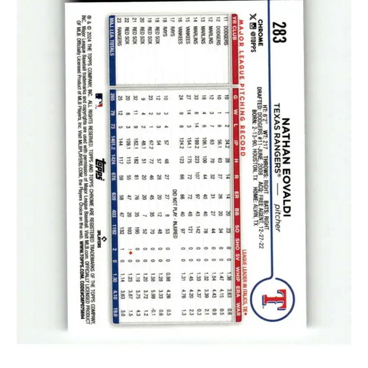 2024 Topps Chrome X-Fractor #283 Nathan Eovaldi NM-MT Texas Rangers Baseball Card