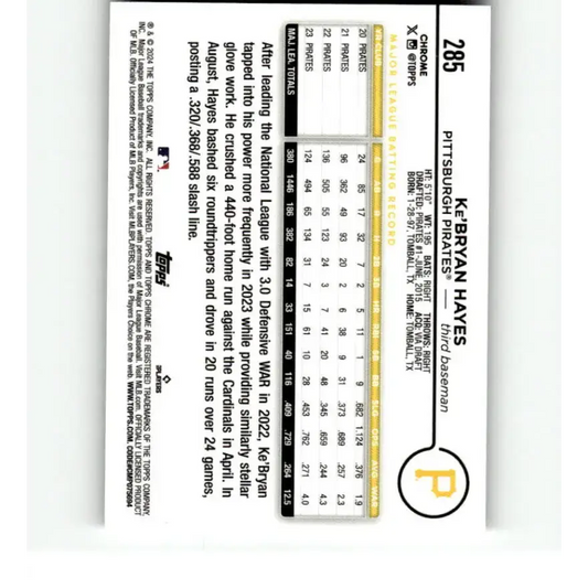 2024 Topps Chrome X-Fractor #285 Ke'Bryan Hayes NM-MT Pittsburgh Pirates Baseball Card
