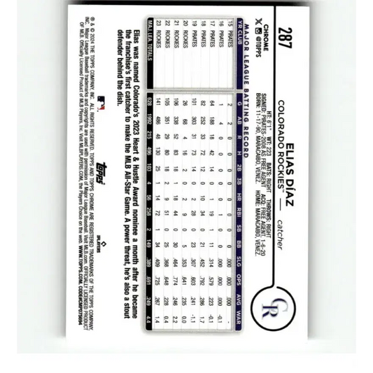 2024 Topps Chrome X-Fractor #287 Elias Diaz NM-MT Colorado Rockies Baseball Card
