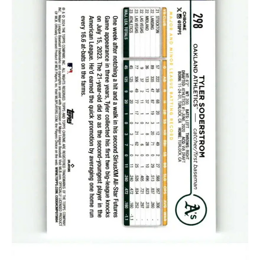 2024 Topps Chrome X-Fractor #298 Tyler Soderstrom NM-MT RC Rookie Oakland Athletics Baseball Card