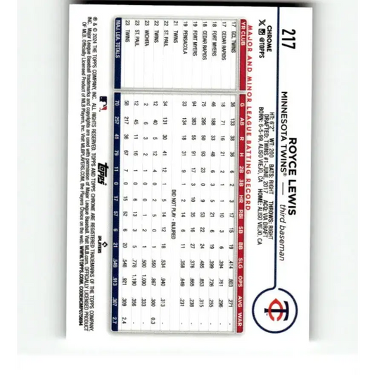 2024 Topps Chrome X-Fractor #217 Royce Lewis NM-MT Minnesota Twins Baseball Card