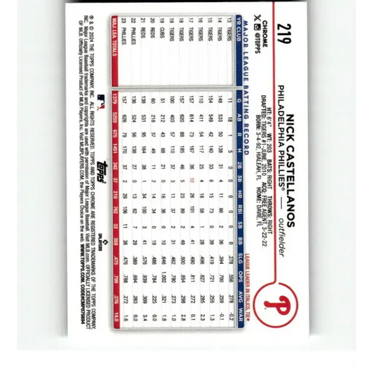 2024 Topps Chrome X-Fractor #219 Nick Castellanos NM-MT Philadelphia Phillies Baseball Card