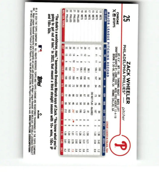 2024 Topps Chrome X-Fractor #25 Zack Wheeler NM-MT Philadelphia Phillies Baseball Card