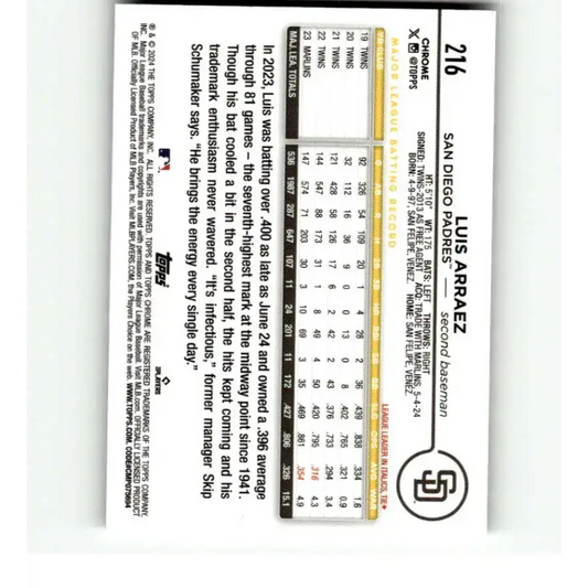 2024 Topps Chrome X-Fractor #216 Luis Arraez NM-MT San Diego Padres Baseball Card