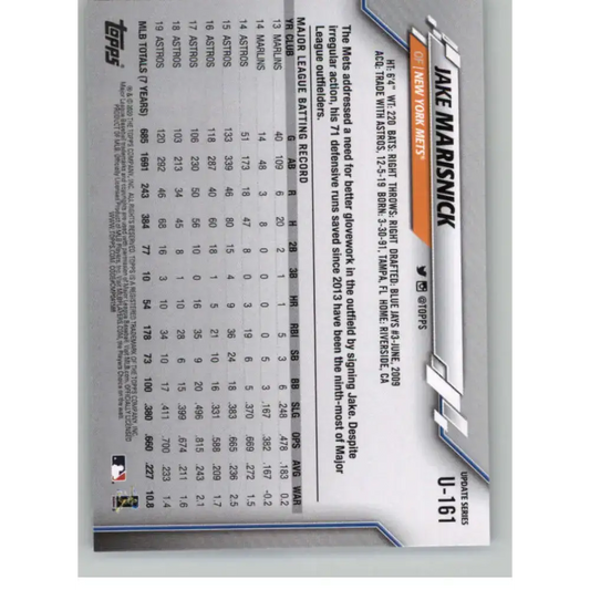 2020 Topps Update #U-161 Jake Marisnick NM-MT New York Mets Baseball Card