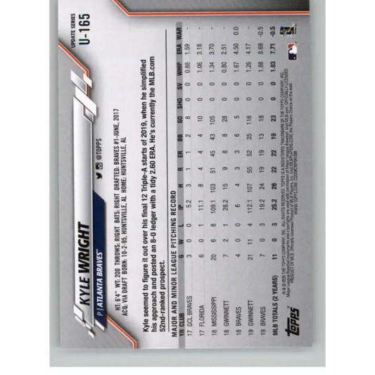 2020 Topps Update #U-165 Kyle Wright NM-MT Atlanta Braves Baseball Card