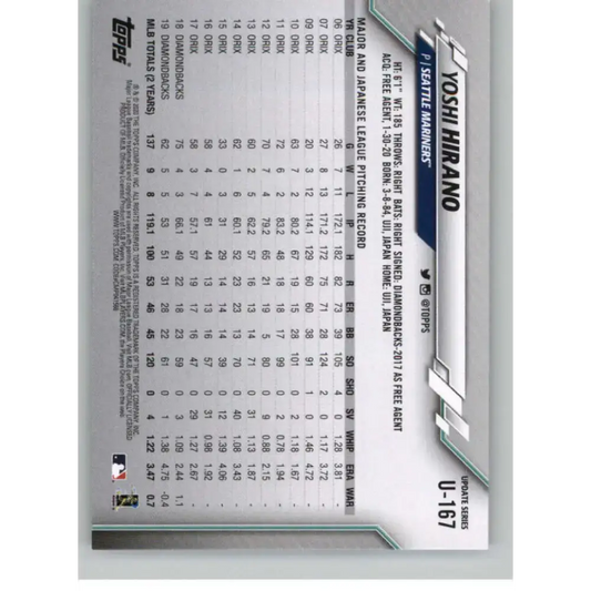 2020 Topps Update #U-167 Yoshi Hirano NM-MT Seattle Mariners Baseball Card
