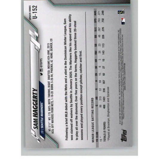 2020 Topps Update #U-152 Sam Haggerty NM-MT RC Rookie Seattle Mariners Baseball Card