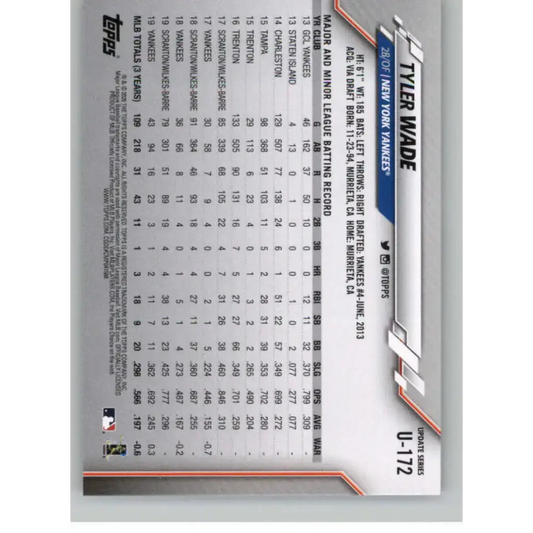 2020 Topps Update #U-172 Tyler Wade NM-MT New York Yankees Baseball Card