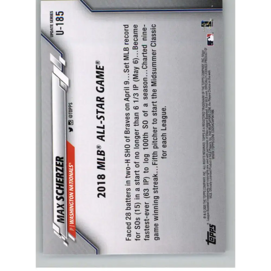 2020 Topps Update #U-185 Max Scherzer NM-MT Washington Nationals Baseball Card