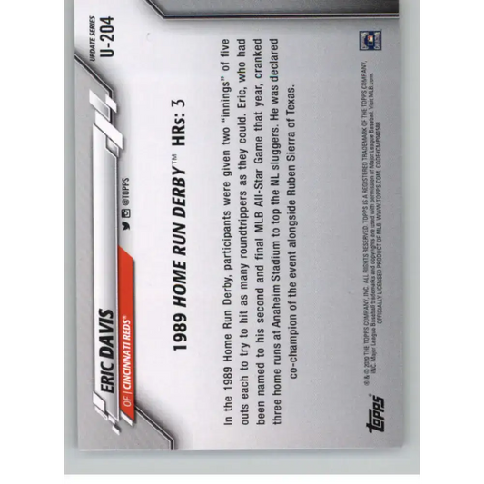 2020 Topps Update #U-204 Eric Davis NM-MT Cincinnati Reds Baseball Card