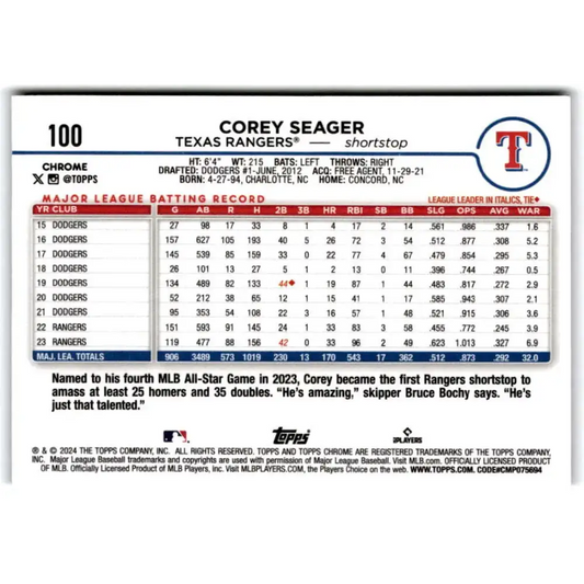 2024 Topps Chrome X-Fractor #100 Corey Seager NM-MT Texas Rangers Baseball Card