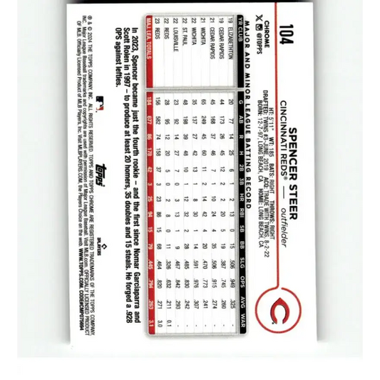 2024 Topps Chrome X-Fractor #104 Spencer Steer NM-MT Cincinnati Reds Baseball Card